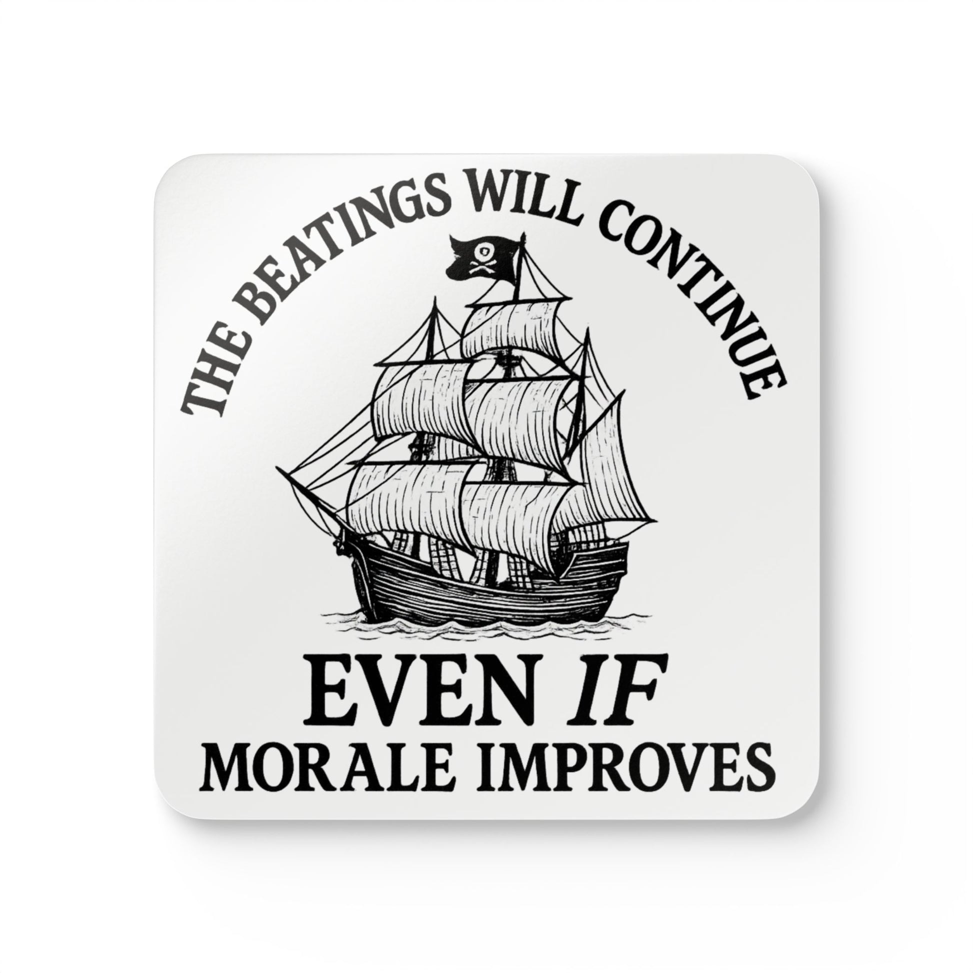 Pirate-Themed Cork Coaster Set - "The Beatings Will Continue"