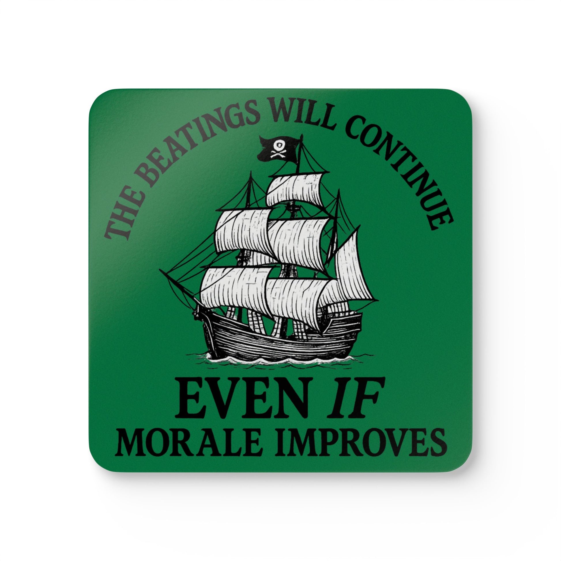 Pirate-Themed Cork Coaster Set - "The Beatings Will Continue"- Dark Green