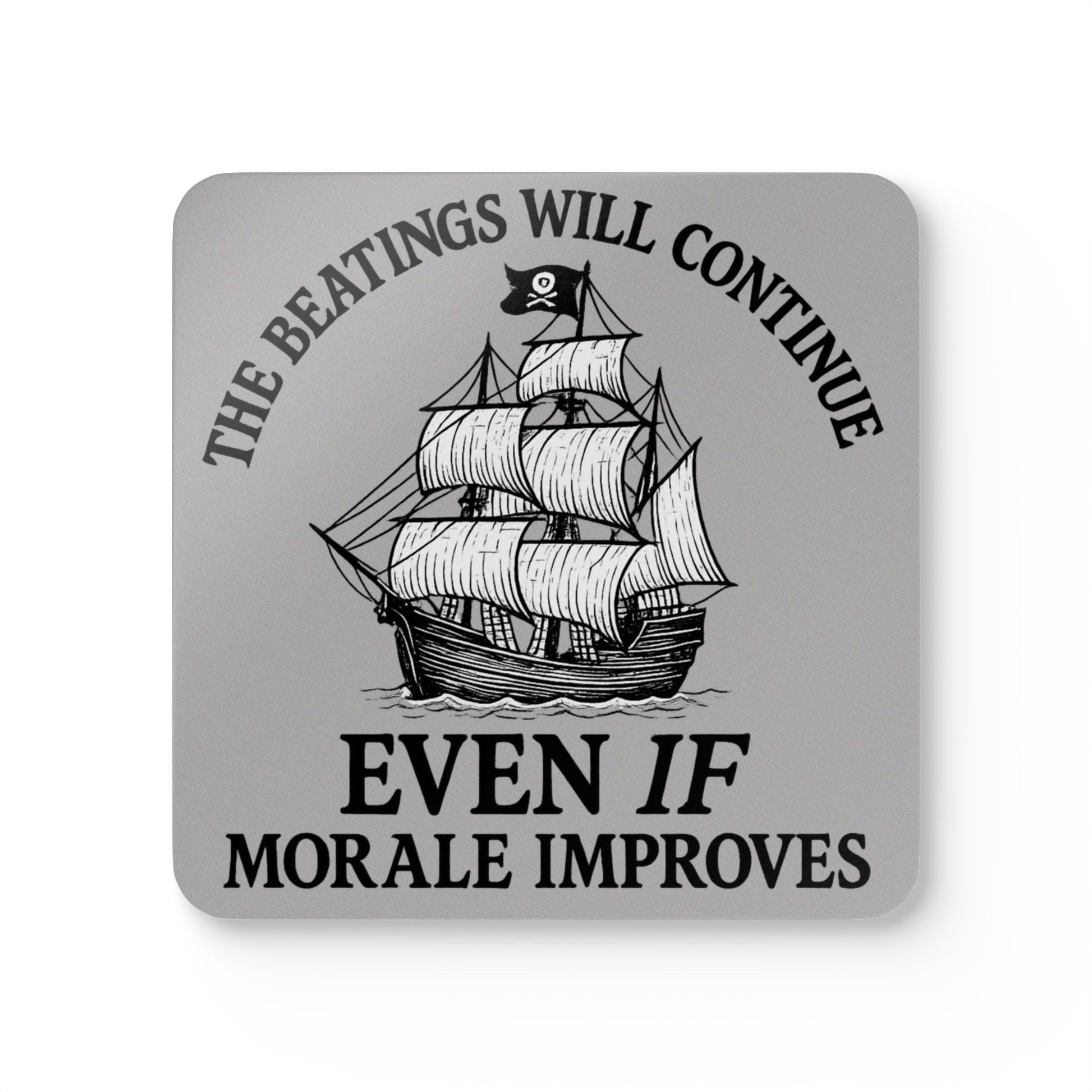 Pirate-Themed Cork Coaster Set - "The Beatings Will Continue"- Light Grey