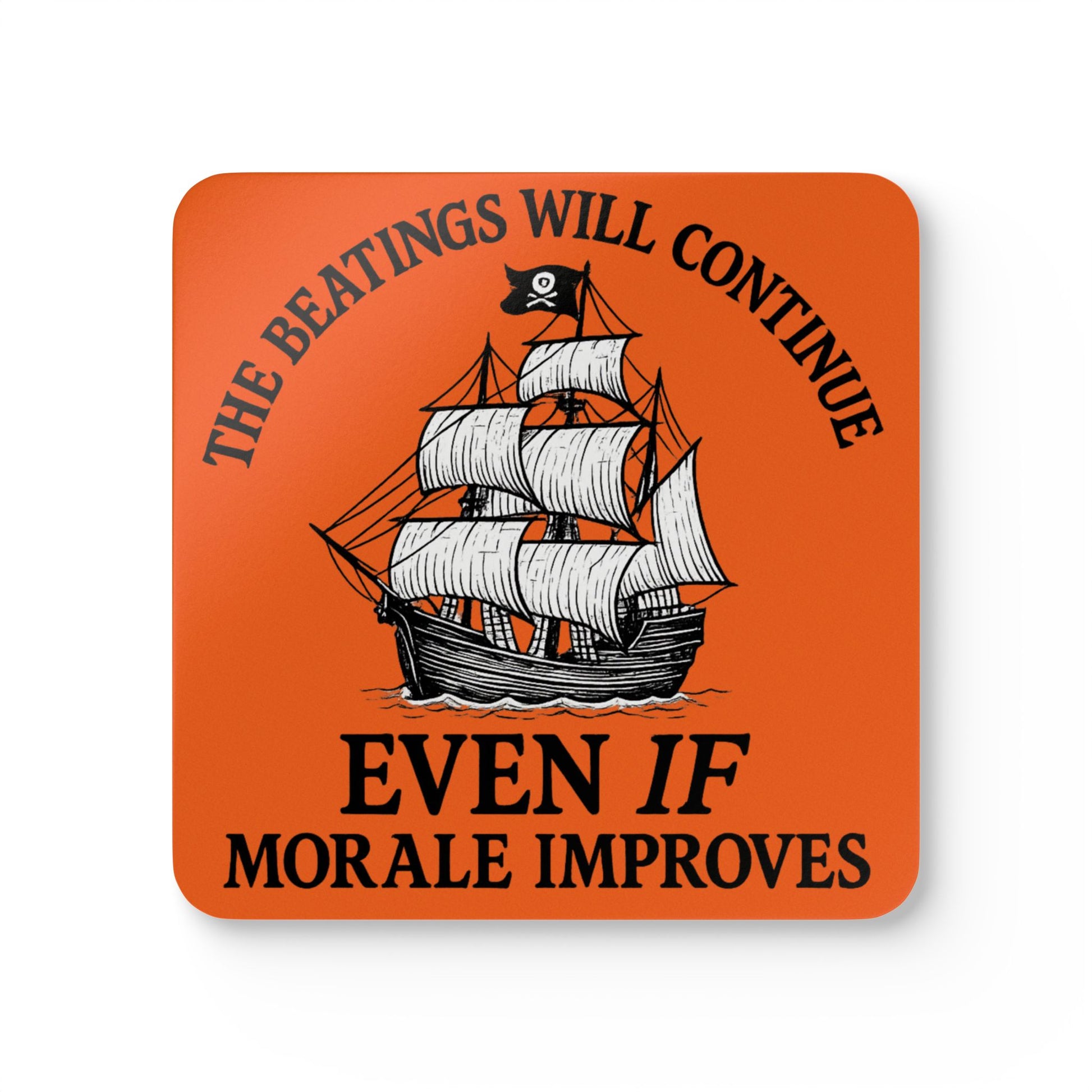 Pirate-Themed Cork Coaster Set - "The Beatings Will Continue"- Orange